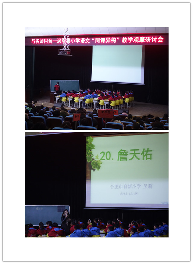 12月29日(rì),廬陽區小語名師(shī)工作室王宏玉、張睿、王志芳、吳莉等四位成員(yuán),應邀赴渦陽參加該縣“與名師(shī)同台——渦陽縣小學語文同課異構”活動。